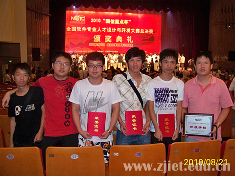我院软件技术专业的康旭峰、陆洲、张圣博、郑浩仁、吴盈栋等五位同学经过省赛选拔和总决赛比赛,最终获得了优异成绩。其中,康旭峰获得“C语言程序设计”高职高专组一等奖,陆洲获得“JAVA软件开发”高职高专组一等奖,其余三名同学均获得“C语言程序设计”高职高专组三等奖。软件技术专业王昌建和朱颖老师则获得了大赛“优秀指导教师”荣誉称号。由于良好的表现,我院与北京信息科技大学、北京理工大学、青岛大学等院校荣获了大赛“优胜学校”的荣誉称号,并获得了国信蓝点信息技术有限公司提供的价值40万元人民币的“企业定制人才实训就业平台”一套。