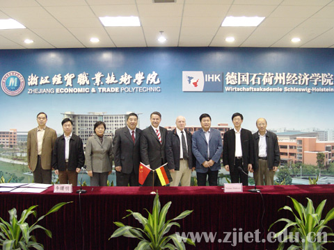 2007年10月30日,德国石荷州经济学院董事长Dr. Detlef Reeker与德国石荷州成教协会前副会长Prof. Werner Hutterer来我院访问。就我院企业管理专业(德语特色班)开展中德合作高等专科教育项目正式签署合作协议,并聘请Prof. Werner Hutterer为我院德语中心副主任。省供销社副主任瞿建,省教育厅领导,学院领导以及企业管理专业(德语特色班)首批21名学生参加了签约仪式。