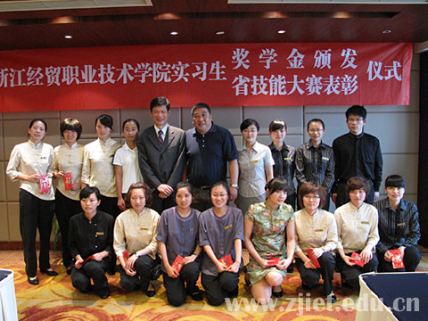 在酒店与学院双方的共同努力下,我院酒店管理专业实习生在一年的顶岗实习中取得了突出的成绩,多位学生在实习阶段就获得了见习领班的职位;毛碎娟同学和沈小飞同学代表酒店参加浙江省旅游饭店服务技能大赛,分别获得了西餐宴会摆台和中式铺床项目的二等奖,并获得了浙江省旅游行业技术操作能手的荣誉称号,为学院和酒店争得了荣誉。本次共有16位同学获得了奖学金,四位学生代表在颁奖仪式上谈了他们实习期间的感受,表示十分感谢学院和酒店为他们提供了这样难得的学习机会。