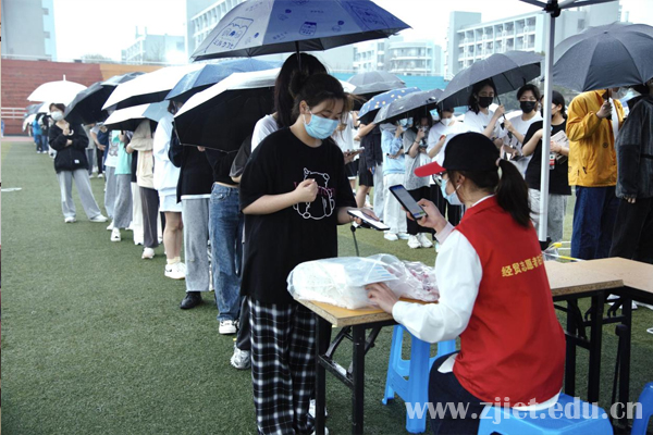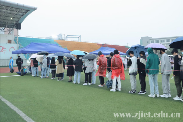 学校在田径场设立14处核酸采集点,受检师生全程佩戴口罩,以部门、学院为单位,按照有序排队、身份核验、核酸检测、有序离场的流程,在指定采样点接受了核酸采集。现场检测工作有条不紊、高效快速。截止到3月14日20时,共完成9010名师生的检测任务。