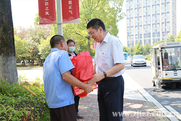 今年入伏以来,杭州持续高温,骄阳似火,酷暑难当。为体现学校对广大奋战在一线员工的关心关爱,学校工会开展了“高温送清凉”活动。8月11日,学校党委书记劳赐铭、校长陈德泉带队慰问坚持在工作岗位上的员工,为大家送去防暑降温慰问品。学校副校长、工会主席何学军,办公室、工会、资产后勤处、保卫处、校园建设处、资产经营公司等部门相关负责人陪同慰问。